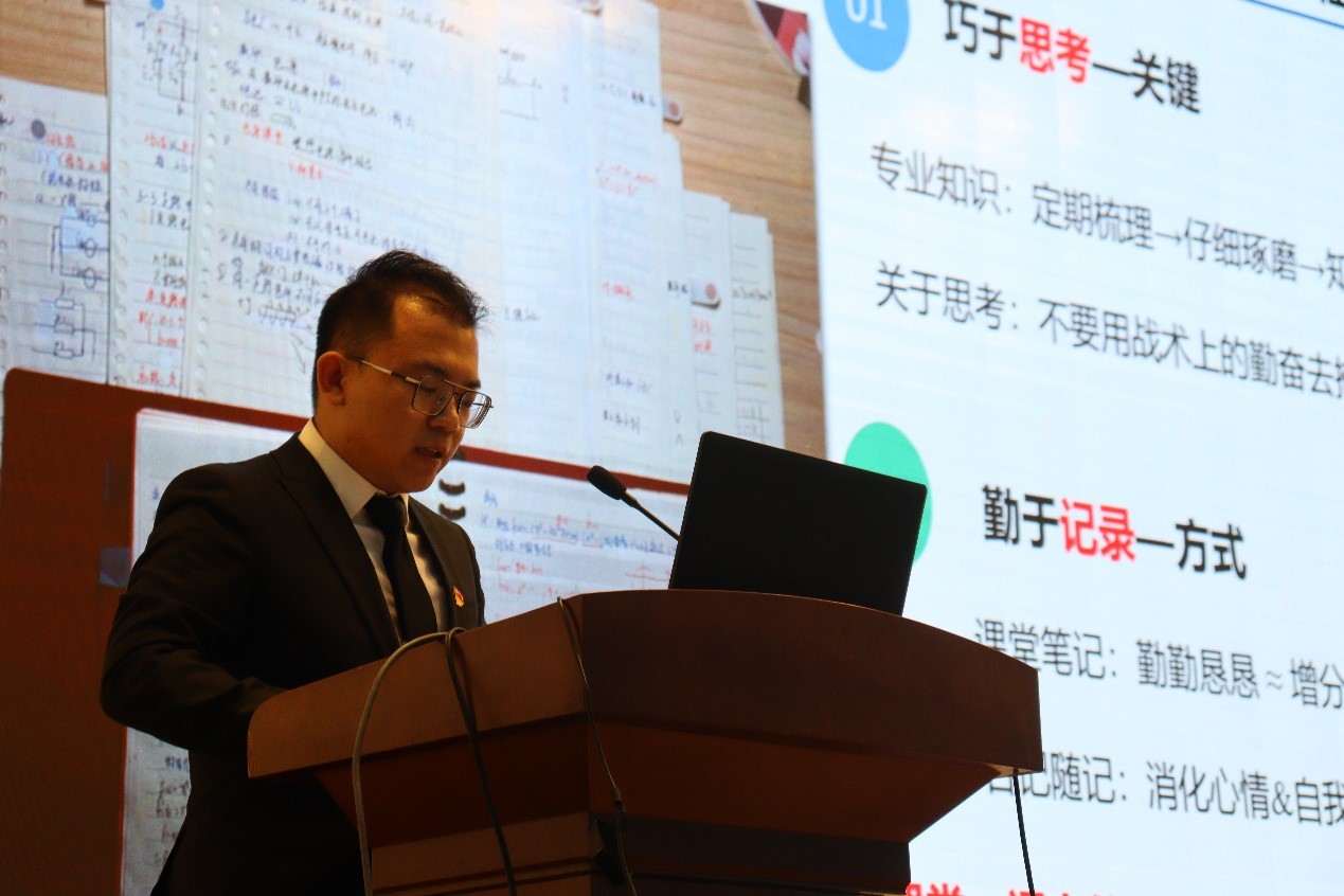 生物技术学院生物工程专业的朱文凯同学,以“凡心所向,素履以往”为主题,向大家强调了学习过程中,做好课堂笔记并将老师的授课内容与自身思考相结合的重要性,介绍科研探索经验的同时,为同学们指明了一些参加各类竞赛的方法途径。在课余时间,朱文凯同学还参加、策划了多项大型校级活动,积极开展志愿实践,立志成为德智体美劳全面发展的社会主义建设者和接班人。